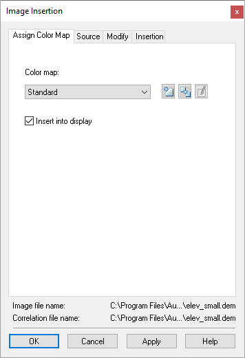 You can use the Image Insertion dialog box to assign a data band to each color channel and decide which channels to include in the display. At any time, you can change the band assignment and view the results on the screen.