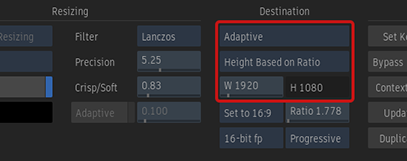 The Adaptive and Scaling Preset modes are also available for media import, in the General, AAF & XML Options, and EDL Options tabs. You can set the destination Width or Height, but the ratio of each clip selected for import is preserved.