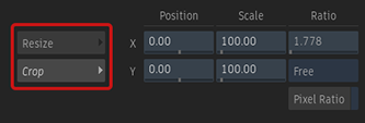 The Crop/Lock Output button is replaced by two menus, Resize and Crop.