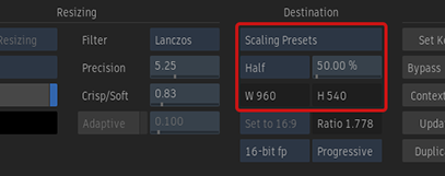 If you prefer to set Width and Height as a percentage of the source clip, select Scaling Preset from the Resolution menu.