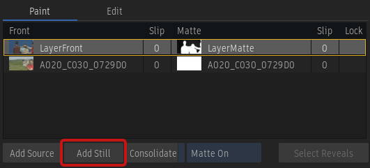 The new Add Still button creates a new single frame source from the image shown in the selected viewport.