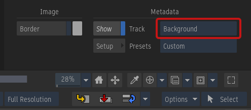 In the Player, you can select the source of the displayed information. This source is either the Primary or the Background track (the lowest track in the timeline). You can set this in the Metadata Overlay Edit Setup, or in the Overlays menu, with the Track box.