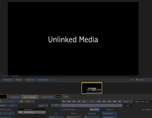 The Media Status layer can now show when the current is unlinked (Unlinked Media) or missing (No Media).