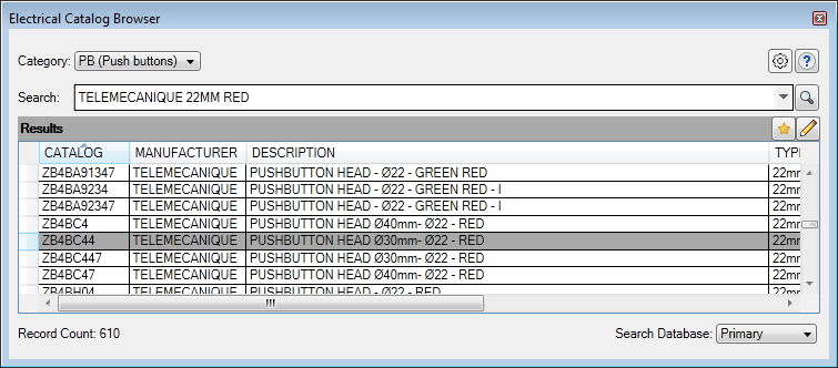 Click the catalog value on the Electrical Catalog Browser and a small palette appears. If there are any parts associated to the catalog value they are shown on the palette.