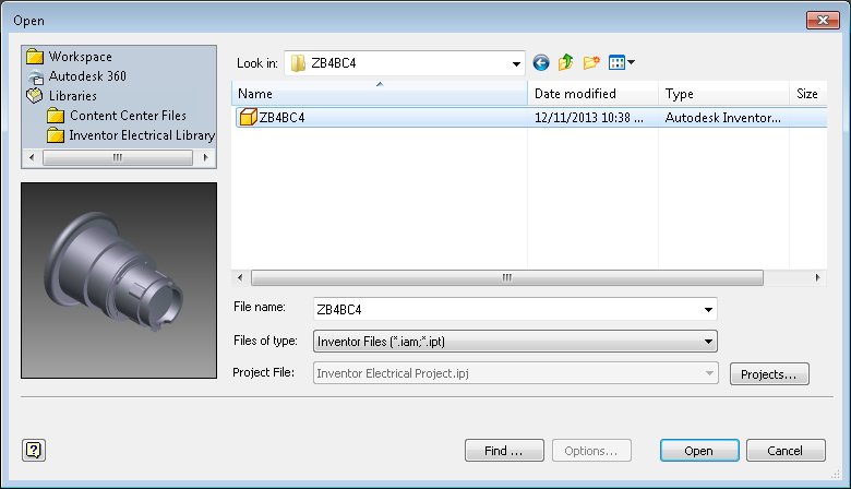 Right-click and select Insert Electrical Part from Catalog Browser.