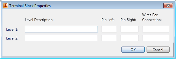 Click to open the Terminal Properties dialog where you enter descriptions, pin values, and wires per connection for each level.
