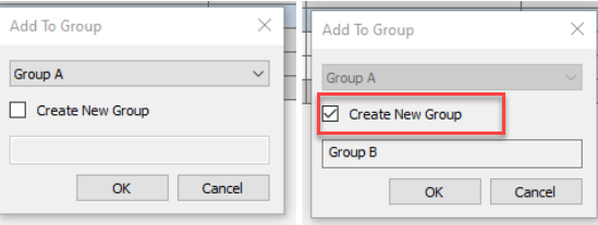 To create a new group, check the "Create New Group" box. To rename or delete a group (and its parameters), select the corresponding item in the right-click menu on the group.