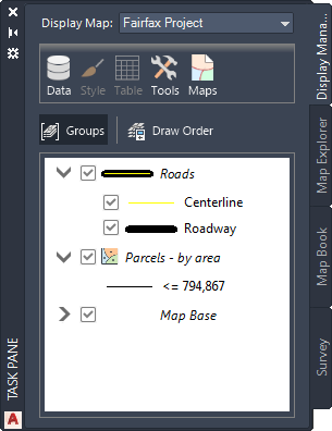 The Display Manager lets you create display maps. Each display map contains a set of styled layers. You can have more than one display map in a map file, and you can style the same data differently in each one.