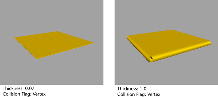 For example, a value of 0.0 creates thin nCloth (such as silk) and a value of 1.0 creates thick nCloth (such as felt).