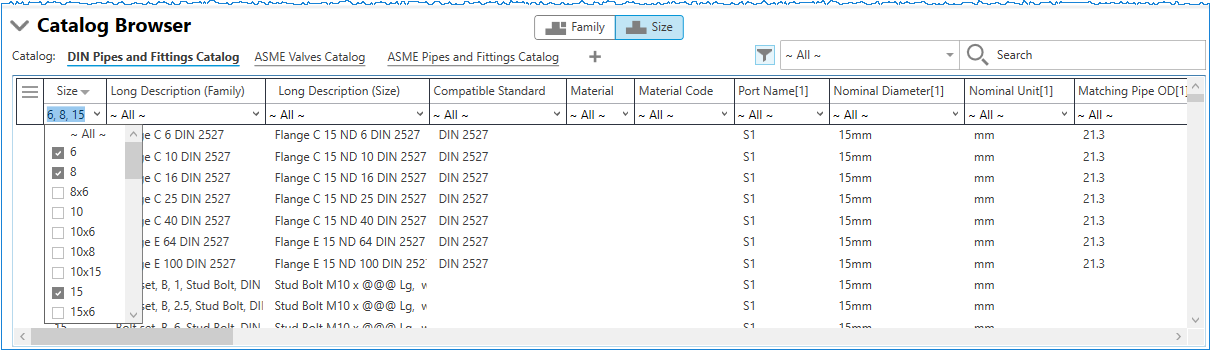 You can edit one or multiple cells simultaneously. When clicking any Size cell in the part list table, the whole row is selected. Moreover, you can copy one or multiple rows and paste them into an Excel spreadsheet, including property headers when copying the whole table.