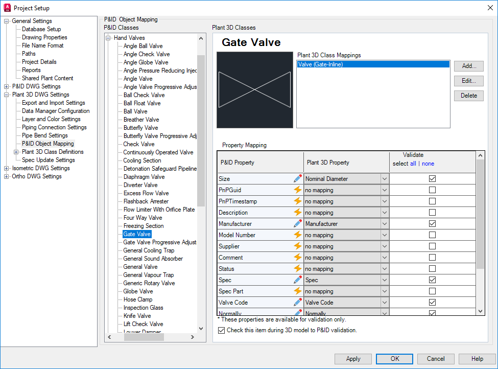 The P&ID Object Mapping feature now allows you to map P&ID parent classes to 3D classes. Once you set the mapping rules for P&ID parent classes, all child classes automatically inherit these mapping rules, eliminating the need to set mapping rules for individual child classes. You can acquire the mapping from the parent class or override it by clicking the icon before the Plant 3D Property options. Additionally, you can hold the Alt key and click the icon to reset all properties to either acquisition or override.