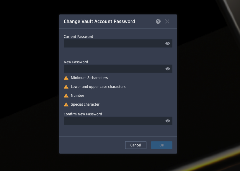 If the administrator enforces a password policy and the current password fails to meet the set requirements, Vault prompts the user to reset their password the next time they log in through either the Thin Client or the Thick Client. For more information, see Configure Password Policy help.