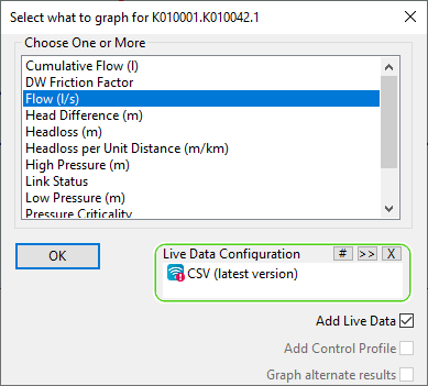 If live data is associated with the simulation in the current active window, this box will automatically be populated with the associated live data configuration. Alternatively, you can drag and drop a live data configuration to the selection box, or use the Browse button to add one. |