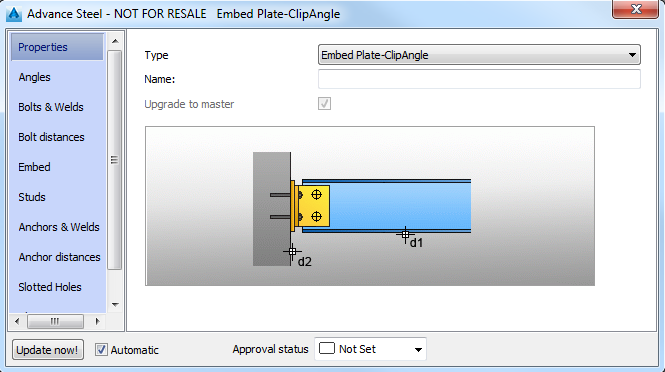 The Embed Plate-ClipAngle joint can be used only between specific types of concrete elements (wall, slab, beam) and some of the steel sections (I, T, C, L, welded, compound or tapered sections).