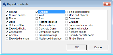 - In the "Report Contents" dialog box, select "Anchors".