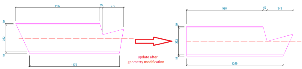 If there is more than one hole/bolt at one extremity, then any of them is supported, and the dimension line does not change to a similar hole during update.