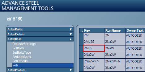 For example, when we refer to the bolt assembly, we need to use the internal name which for a specific bolt assembly can be found as follows: Open the AstorBase database and go to the Sets table.