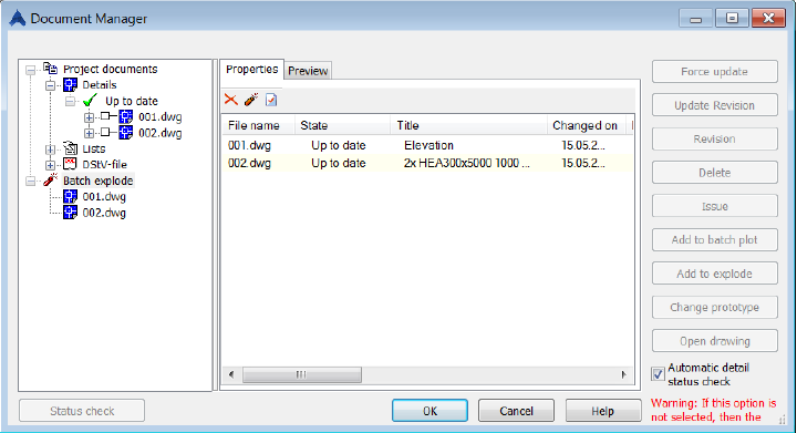 Before exploding the selected drawings you can set the explode options. This user configuration can be stored in defined profiles in order to be reused in future projects.