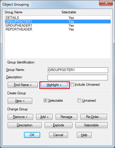 Highlight button, the corresponding group will be highlighted in the DWG.