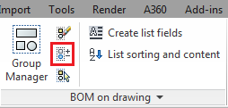 BOM on drawing panel or using the AutoCAD