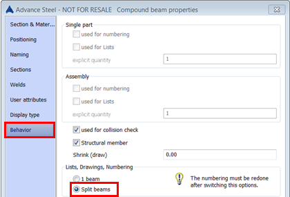 Advance Steel allows the user to choose the behavior of a compound profile such as split profiles.