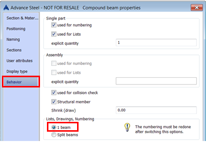 During numbering, the compound profiles in Advance Steel behave in 2 ways: