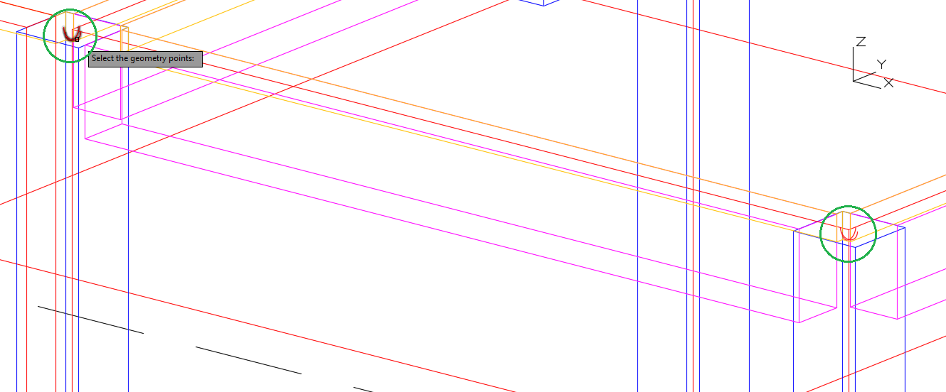 The same applies to bind the top part of the wall to the "Level 2" work plane, but this time you will select the upper points of the wall. Attach the beam using the same method, with the difference that it will only be attached to the upper work plane of "Level 2".