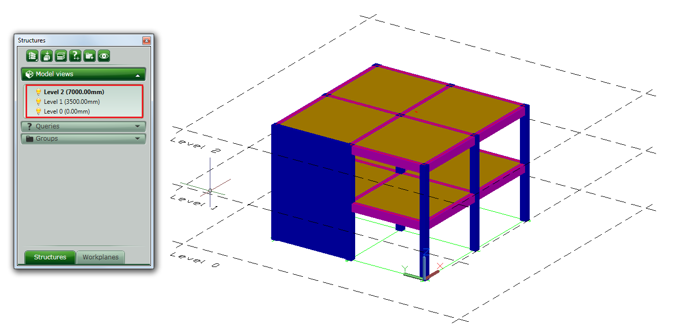 If a level is NOT activated, the new model elements will be created according to the UCS. To attach these newly created elements to levels: