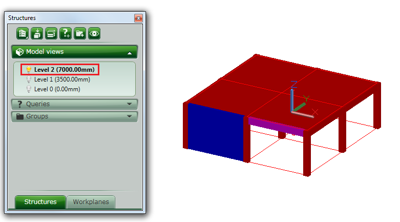 If a level is activated, the new model elements will be created on the workplane(s) of the activated level.