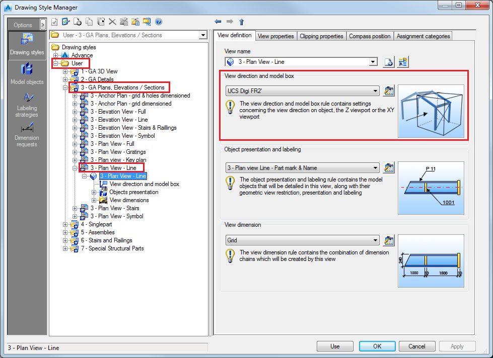 User category > GA Plans, Elevations / Sections. Access the Drawing Style Manager from the