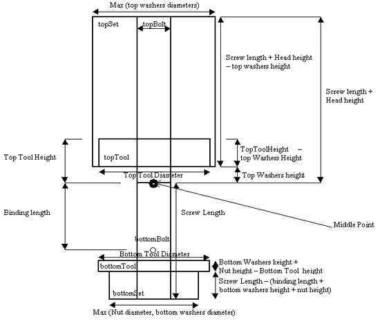 The dimensions (height, diameter) of the washers and nuts are in AstorBase - SetNutsBolts, and for Tool are in AstorBase - Tools. These dimensions depend on the definition of the bolts (AstorBase - SetOfBolts).