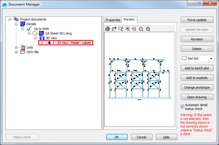 Your detail is created using the drawing style set in the Camera dialog (3D View - Model - Labels) and not the one present in the process detail map (Elevation View - Line).