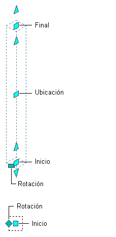 Seleccione el pinzamiento de ubicación para cambiar la ubicación del elemento estructural, o el pinzamiento de rotación para cambiar su rotación (la rotación del elemento sobre su eje extruido).