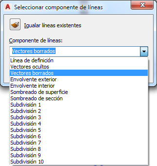 (Igualar líneas existentes) y seleccionar líneas en el alzado cuyo componente de visualización desea igualar.