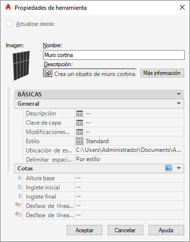 En Ubicación de estilo aparece el dibujo de estilo asociado.