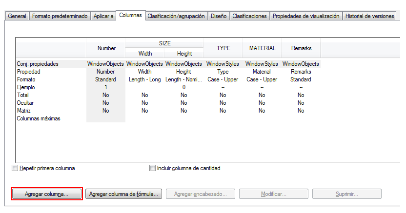 - Haga clic en la ficha Columnas