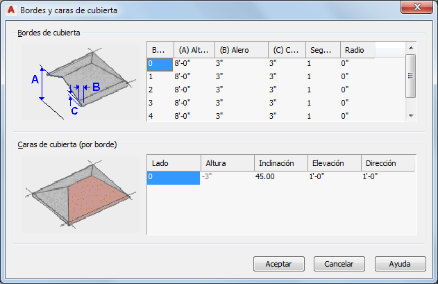 modificar la vertiente de una cara de cubierta | seleccione el parámetro Inclinación de la cara de cubierta y escriba un valor. |