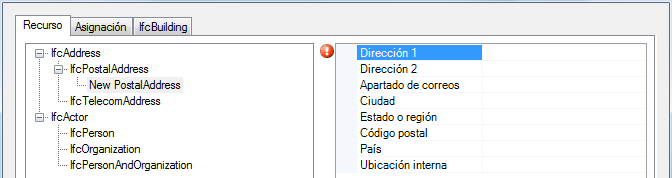 3. En la ficha Recurso del cuadro de diálogo Recurso y Asignación de IFC, expanda una categoría de recurso IFC (por ejemplo, IfcAddress).