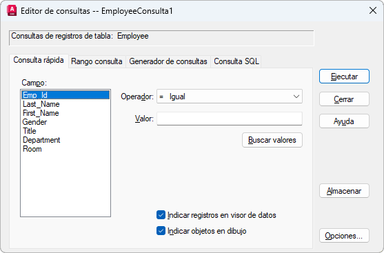 Cierra el cuadro de diálogo sin ejecutar la consulta.