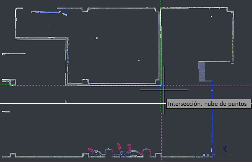 - Hace referencia a la intersección de las líneas de sección deducidas para los segmentos de nube de puntos que se cortan con un objeto de plano de sección. El aumento de la vista incrementa la precisión del punto de intersección.