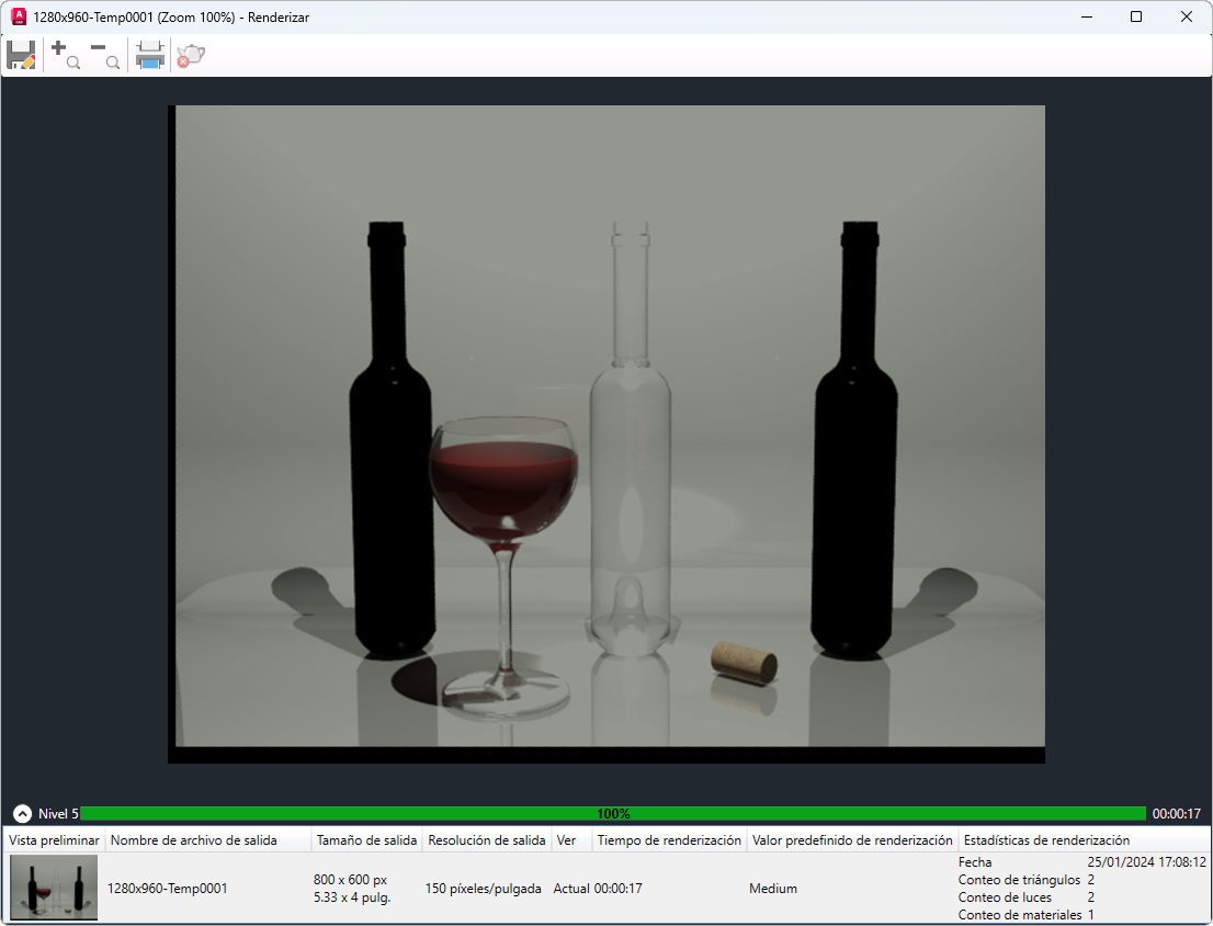 La renderización a partir de un dibujo aparece siempre en la ventana Render correspondiente.