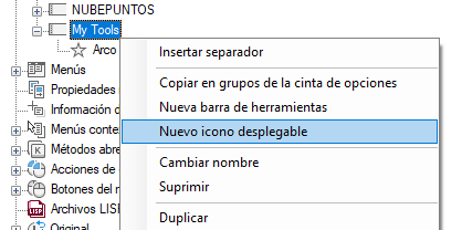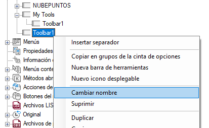 Se crea una nueva barra de herramientas (denominada Barra de herramientas1) y se incluye un nuevo icono desplegable que hace referencia a esta en la parte inferior de la barra de herramientas seleccionada.