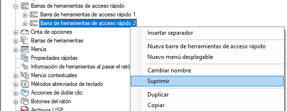 Supresión de una barra de herramientas de acceso rápido