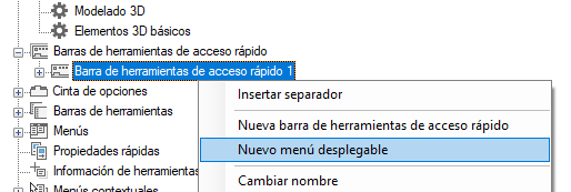 Se añadirá un menú desplegable nuevo (denominado Nuevo menú desplegable) en la parte inferior de la Barra de herramientas de acceso rápido.