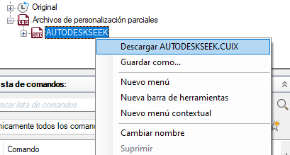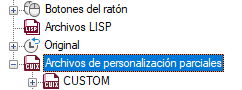 Los archivos CUIx parciales cargados en el archivo CUIx principal se muestran bajo el nodo Archivos de personalización parciales.