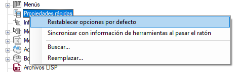 Restablecimiento de los parámetros por defecto de las Propiedades rápidas