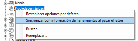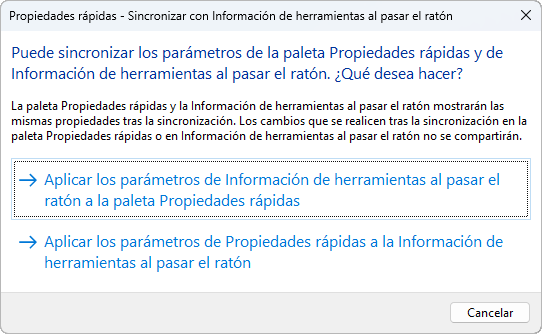 Sincronización de las Propiedades rápidas con la información de herramienta al pasar el ratón