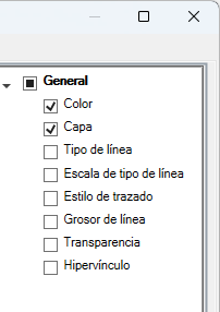 - En el panel Propiedades, active las casillas adyacentes a las propiedades generales que desea que la paleta Propiedades rápidas muestre para todos los tipos de objeto.