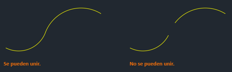 Existen varias combinaciones de objetos que se pueden unir, cada una con requisitos ligeramente diferentes. Este artículo se centrará en líneas, polilíneas y arcos.