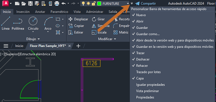 Supongamos que desea que la capa FURNITURE sea la actual. Por supuesto, podría simplemente abrir la lista de capas y desplazarse hasta encontrar la capa FURNITURE. En su lugar, vamos a utilizar Establecer como actual para cambiar rápidamente la capa actual.